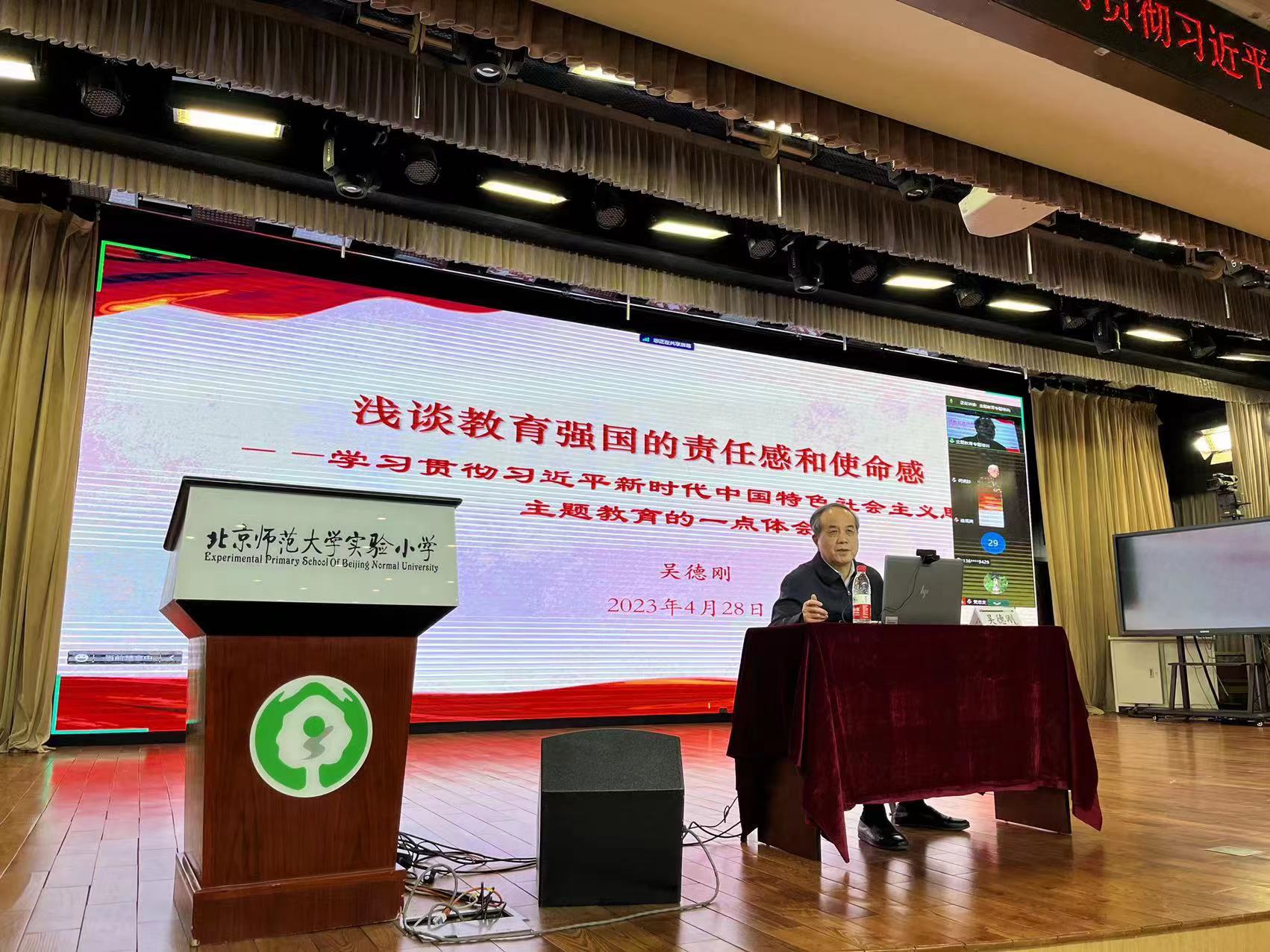 2023年4月28日,在实验小学与实验幼儿园二级党校的安排下,幼儿园党总支组织全体党员参加学习贯彻习近平新时代中国特色社会主义思想主题教育专题培训。二级党校特邀原中央党史和文献研究院副院长吴德刚博士作为本次专题培训的主讲人,幼儿园党总支书记黄珊做主持,二级党校的全体党员、入党积极分子等共计160余人参与学习聆听,培训采用线上线下相结合的方式进行。