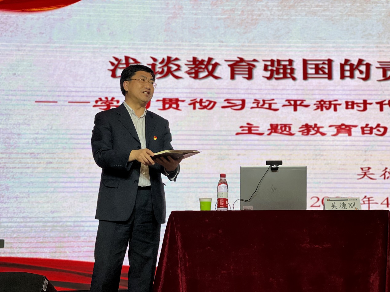 吴德刚博士培训的主题是“浅谈教育强国的责任感和使命感——学习贯彻习近平新时代中国特色社会主义思想主题教育的一点体会”,主要内容包括:为什么要学习习近平新时代特色社会主义思想和二十大精神;学习主题教育的两个把握;坚持人民至上、自信自立、守正创新、问题导向、系统观念、胸怀天下的学习立场和方法;从历史逻辑、理论逻辑、实践逻辑的角度学习主题教育;主题教育与教育强国的学用结合等四个方面进行重点讲述。吴博士的讲解站位高远、条理清晰、论述深刻、逻辑缜密、联系实际,具有很强的政治性、理论性、实践性和指导性。