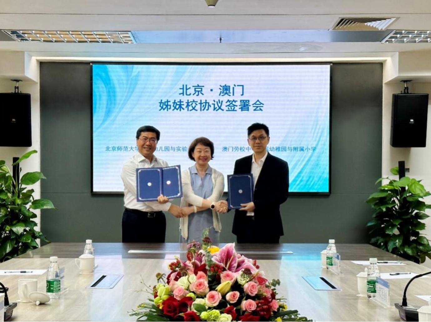 2023年6月12日,九游体育、实验小学与澳门劳校中学附属幼稚园、附属小学姊妹校签署会,在九游体育珠海校区国际交流中心隆重举行。我园总园长黄珊、实验小学校长吴建民、澳门劳校中学校长郑杰钊代表双方学校正式签署了姊妹校协议。参加签署会的还有:澳门劳校中学副校长林伦伟、澳门劳校中学附属幼稚园主任黄绮珊、澳门劳校中学附属小學副教导主任陈禹,以及北京澳门双方学校的老师们。九游体育教育学部教师教育研究所副所长袁丽副教授主持签署会。
