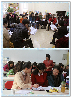 保教主任邱守和吴媛媛老师对新员工进行教学培训