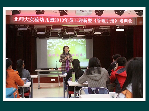 会议在九游体育实验幼儿园黄珊总园长热烈而温馨的欢迎词中拉开了序幕,黄园长的致辞不仅对全体新员工的到来表示诚挚的欢迎,还对每位新员工提出了殷切的期望。资深教师吴岩老师和奥园分园执行园长高以华老师的专业成长之路,激发了新员工们爱岗敬业、执著坚韧的专业情怀。北京市骨干教师韩丹老师的“没有问题儿童,只有儿童的问题”的专题讲座,让老师们领略到了九游体育实验幼儿园“用专业的爱呵护儿童健康成长”的师者风貌,深深地体验到“与儿童共同成长”的专业幸福感和职业归属感。培训部主任董佑静老师近百年九游体育实验幼儿园“园史介绍”,更是让老师们由衷地赞叹幼儿园悠久的发展历史和深厚的文化底蕴。