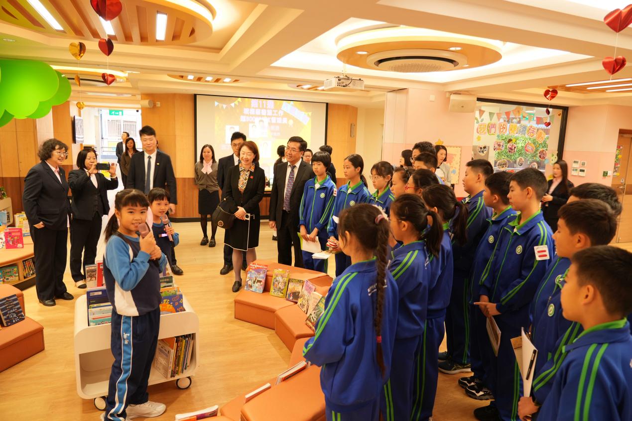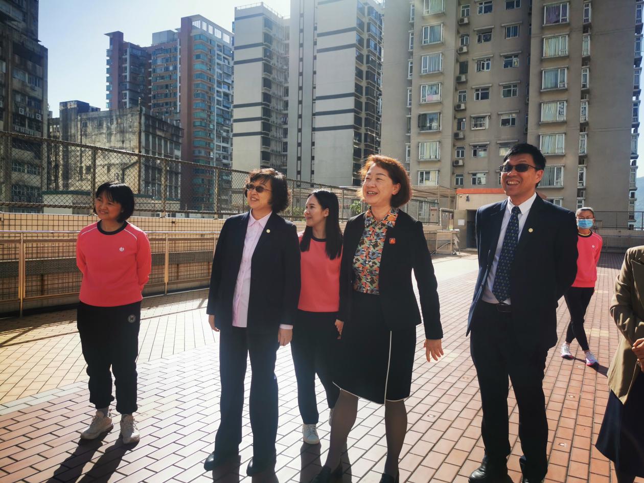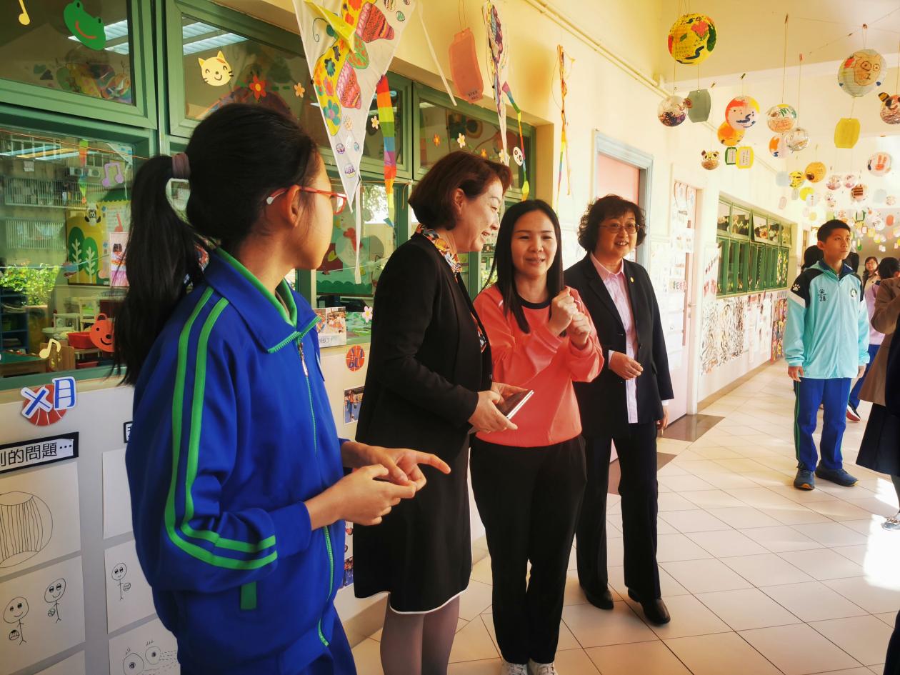上午,在劳校中学附属小学,访问团一行首先来到操场,聆听了小学生介绍的“光辉百年.美好家园”壁画,参观了图书馆、电脑室、科普室等功能教室,详细了解了塑胶瓶盖回收壁画《“塑”造澳门新八景》的创设过程。劳校中学附属小学在爱国教育、信息化建设、STEM课程等方面的探索给访问团留下了深刻的印象。