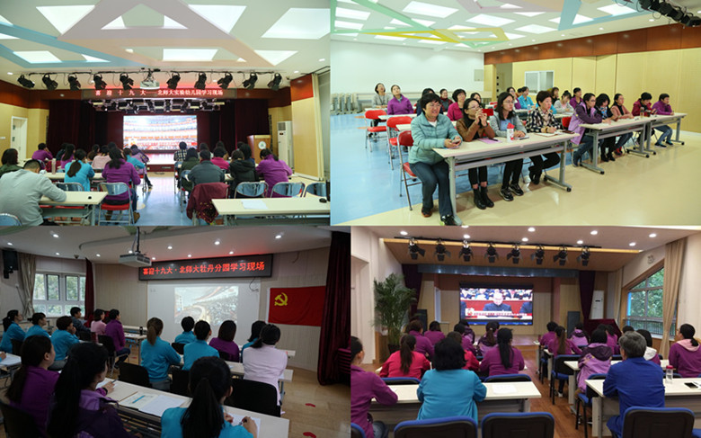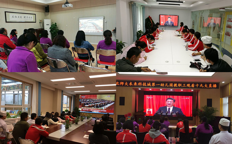 2017年10月18日上午,中国共产党第十九次全国代表大会在北京人民大会堂隆重开幕。幼儿园党支部组织党员干部、积极分子、团员教师代表、教职工代表共140余人在七个会场同时观看开幕式直播,并认真聆听习近平总书记代表十八届中央委员会做的报告。