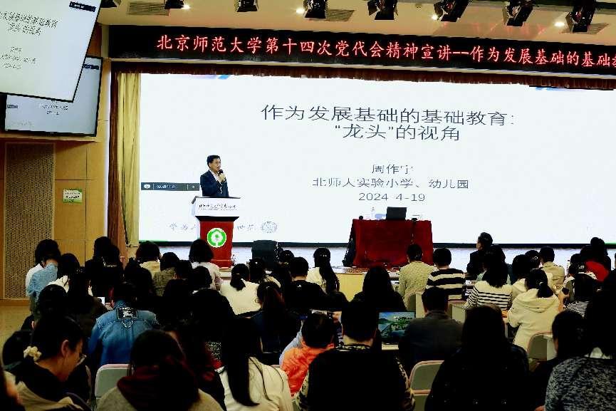 周作宇副校长立足学校第十四次党代会的报告要点,基于教育改革发展面临的挑战与任务,围绕健全人的全面发展体系、建设中国式现代化的教育新征程,对学校第十四次党代会精神进行了系统解读,强调了基础教育在建设高质量教育体系中所肩负的责任及使命。