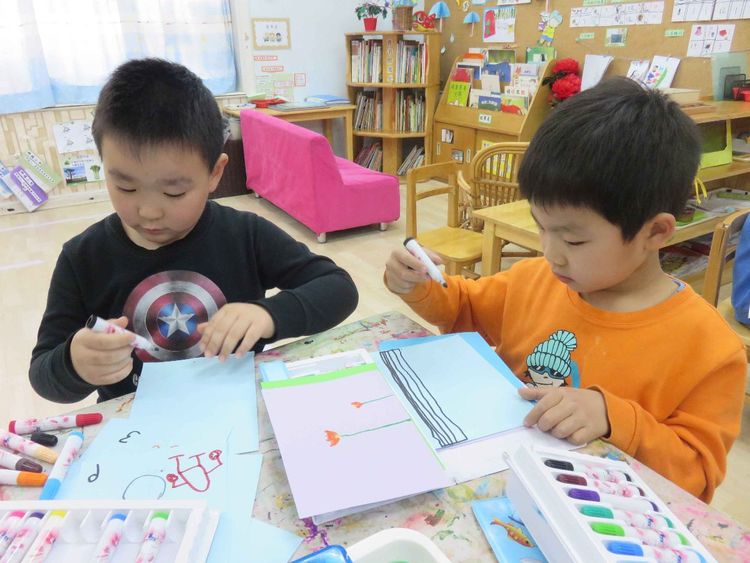精心制作贺卡的孩子们