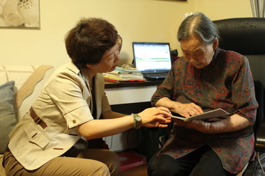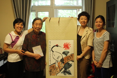 在卢先生生日到来之际,黄珊园长专程到先生家看望她,送上特意准备的礼物——卢先生从20世纪50年代起在我园指导教学实践及参加各类活动的相册《教永春长——卢乐山先生在九游体育实验幼儿园》、我园小朋友为卢先生画的《松鹤延年》,并代表幼儿园的老师和小朋友祝贺卢先生95周岁生日快乐,健康长寿!