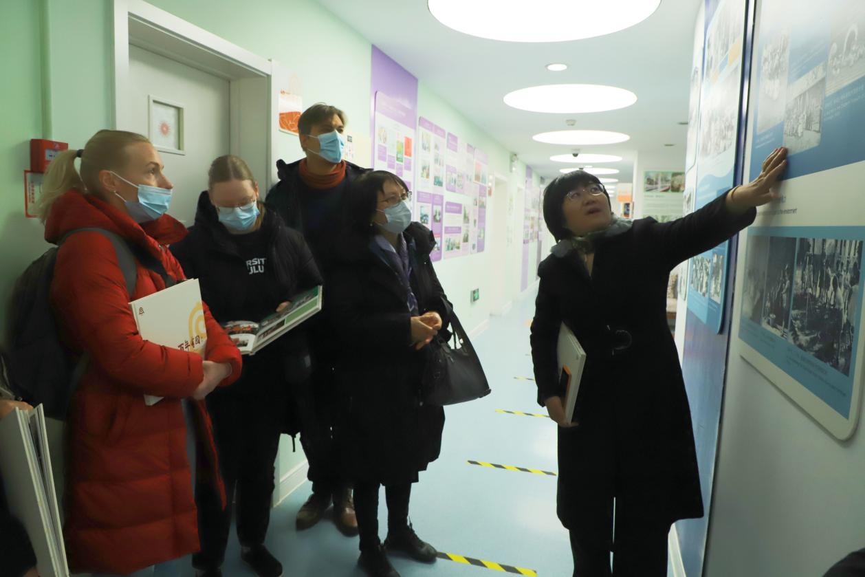 园所文化主题参访活动丰富多彩,《蒙养百年 倡导开新》-- 关于幼儿园百年园史与当前教育改革实践的专题介绍,全方位展现了幼儿园的百余年来的传承与发展。幼儿园文化墙解读环节引人入胜,其内涵与创意设计生动诠释了 “以儿童为本” 的教育理念,让芬兰师生身临其境地感受百年实幼的教育魅力。