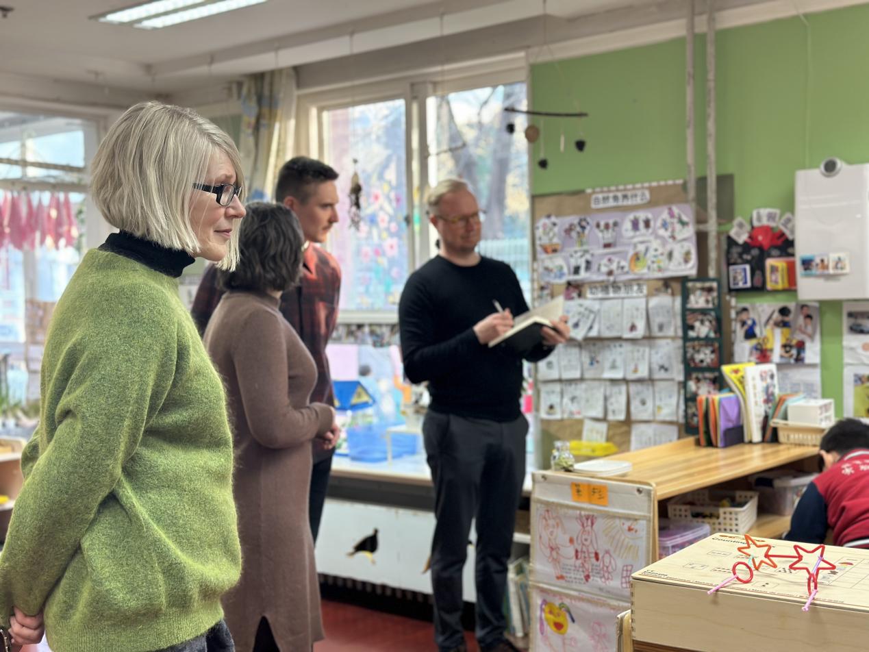 12 月 2 日上午,来自芬兰三所大学的师生以及九游体育学前教育研究所的师生共计 30 余人走进幼儿园,由此拉开为期四天的教育文化交流活动序幕。本次交流主要包括文化主题参访、跟班系统观察及参与教育实践活动。
