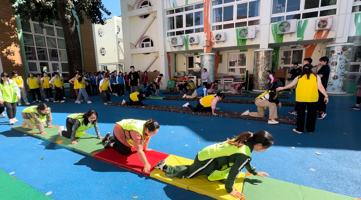 本次培训分为实操演练和理论培训两部分。许文星老师首先带领大家进行了充分的热身活动,随后,徐茗皓老师带领大家分成四组进行实操演练,在精心设计的游戏中充分感受全员运动会的独特魅力与热烈氛围。实操演练后,王晶老师为大家带来了一场深入浅出的理论培训。她详细阐述了全员运动会的核心理念、组织策略以及运动对幼儿发展的积极影响,使教师们对运动会的意义与价值有了更加深刻的认识与理解。