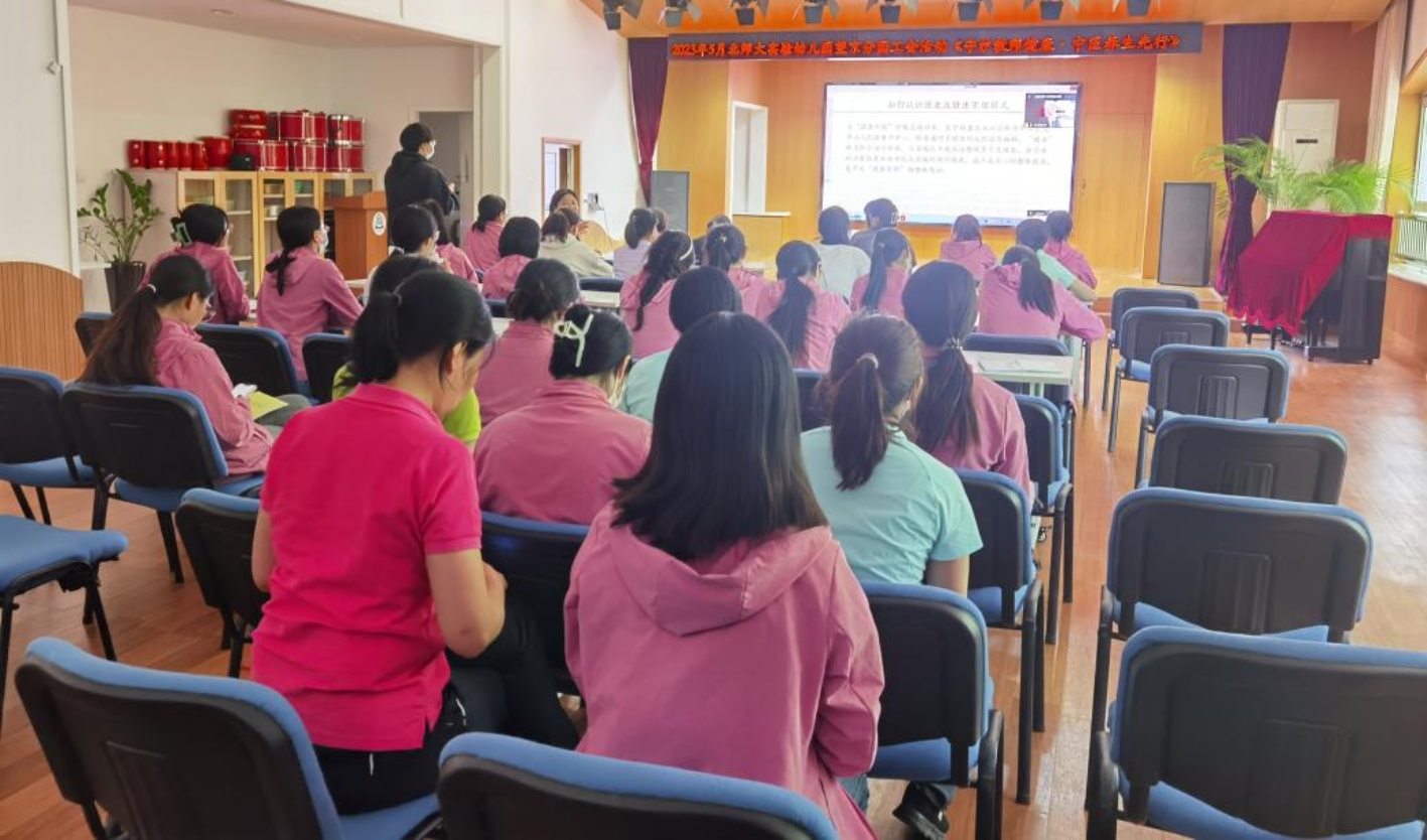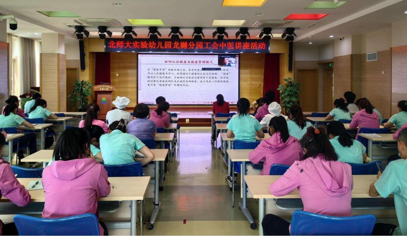 中医文化源远流长,博大精深。为帮助教师感受中医文化的独特魅力,树立健康生活理念,幼儿园工会于2023年5月11日,特邀北京十方泰和中医医学研究院院长杜冰及团队,开启了“守护教师健康,中医养生先行”健康讲座。活动以线上线下结合的方式开展。校本部园主会场52人,线上六所分园共计211余名教职员工参加活动。幼儿园党总支书记、总园长黄珊,工会主席丁乐与教职员工共同线下参加活动。工会副主席吕霞主持活动。