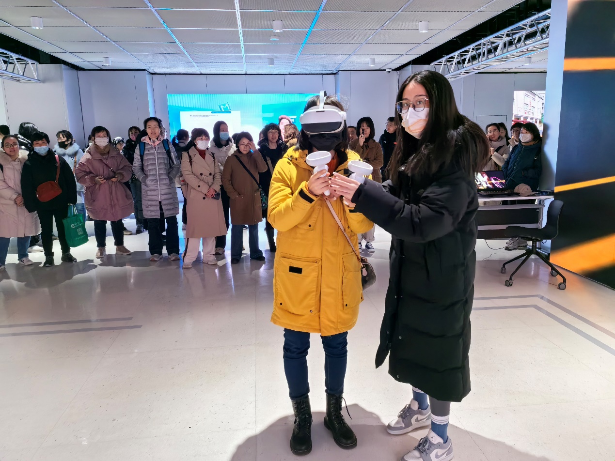在张家湾设计小镇,管理干部一行来到元宇宙应用创新中心,在沉浸式的参观体验中,管理干部感受到元宇宙数字化、智能化、虚拟化等特点所产生的神奇魅力,也更加意识到数字技术、科技创新对于未来教育的重大意义。