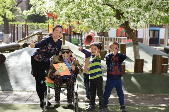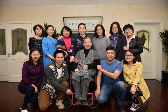 小朋友们与101岁段裔老师合影