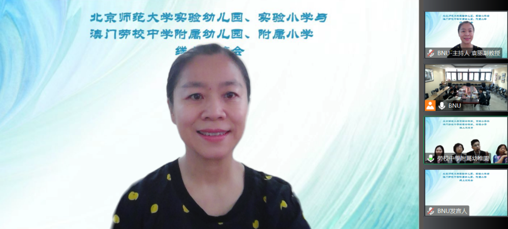 首先,主持人袁丽副教授作为北京澳门两地的牵线人,简要回顾了两地学校建立友好互动的渊源,介绍了本次线上会议的背景。