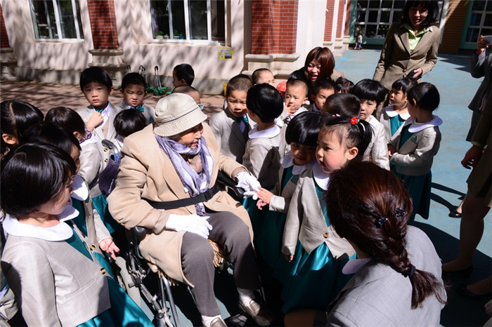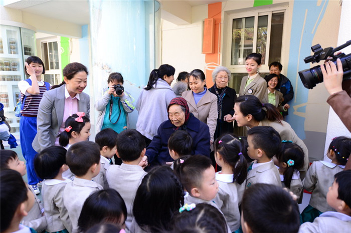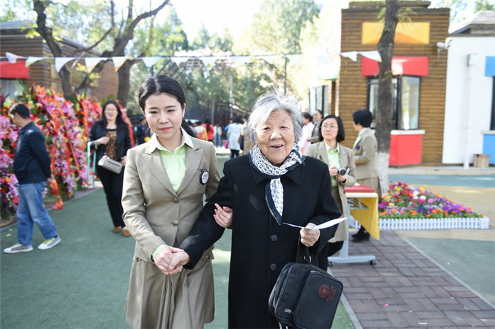 100岁的段裔老师来幼儿园参加教师返校活动