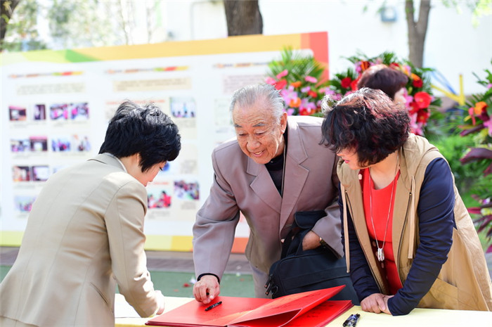 每位老教师如同回家一样的亲切,朗朗的笑声,深情地拥抱,自豪的话语,浓浓的亲情,感染着在座的每一个人。百年历史印染在他们雪白的银发里,记载在黑白的老照片里 。
