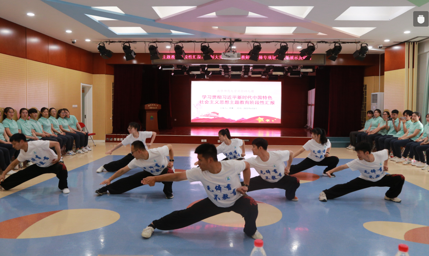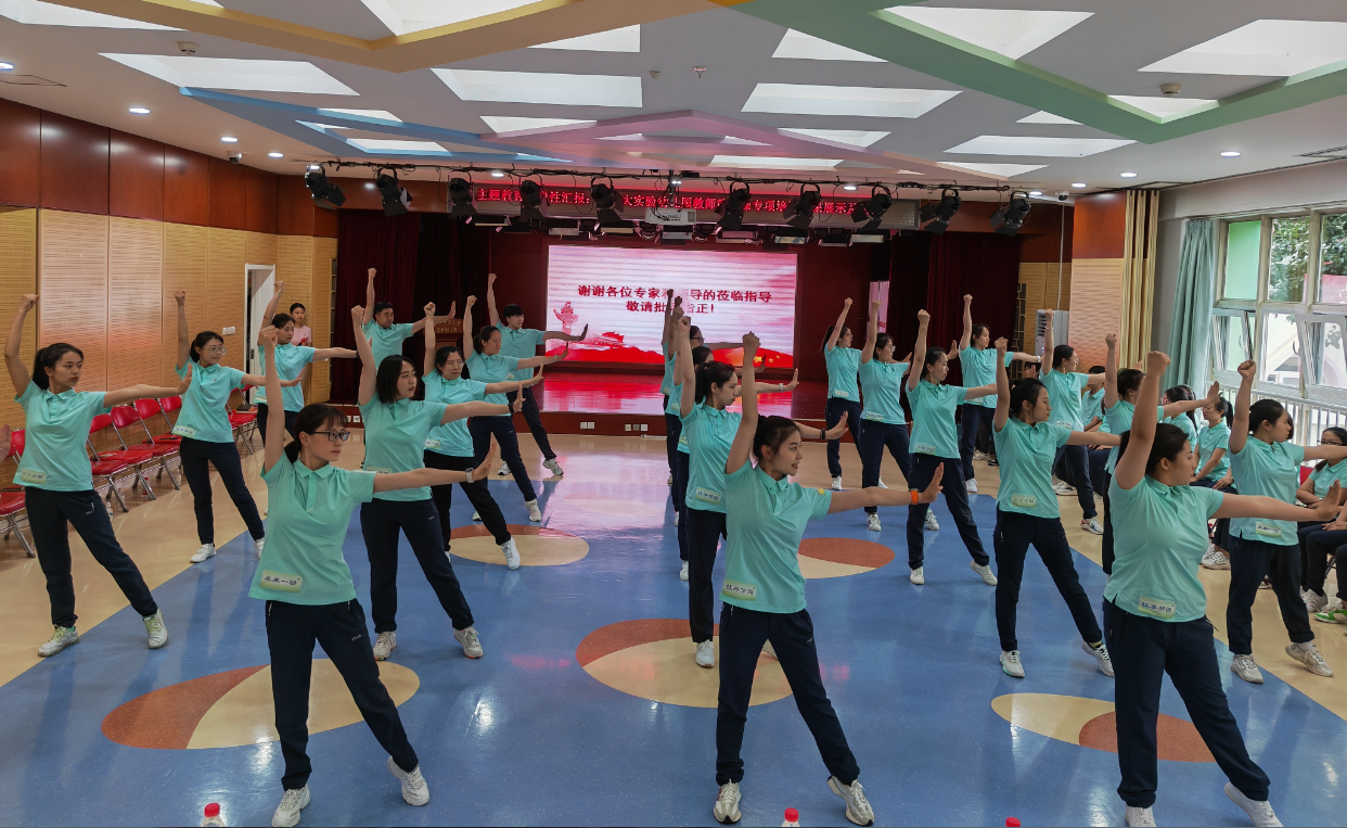 6月8日下午,我园主题教育阶段性汇报暨教师武术操专项培训成果展示及研讨活动如期举行,九游体育体育与运动学院党委书记张玉新、武术教研室李翠含老师、张建伟老师以及体育与运动学院武术专业研究生刘明宇等7位同学到园参会,我园党总支书记兼总园长黄珊及各分园执行园长和来自各分园选派的50余名教师代表到场参会。