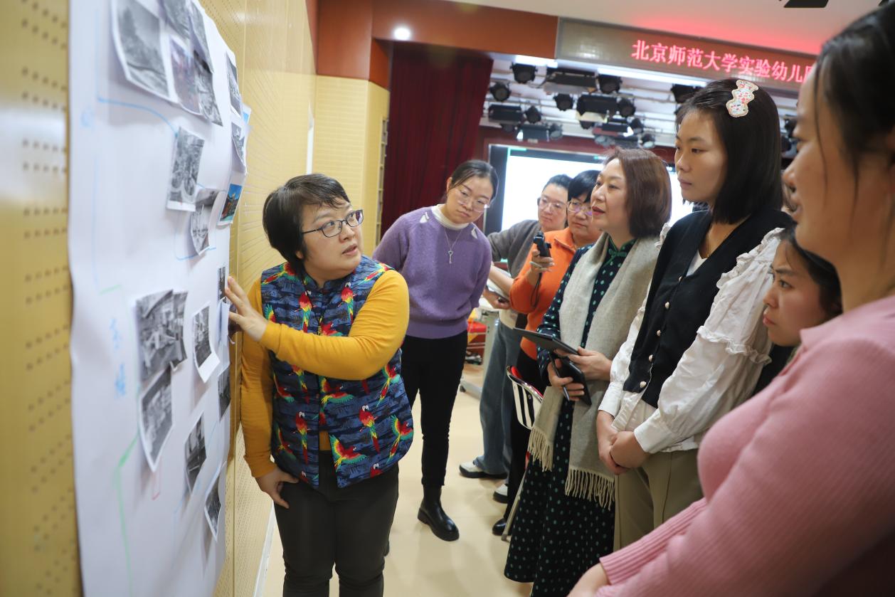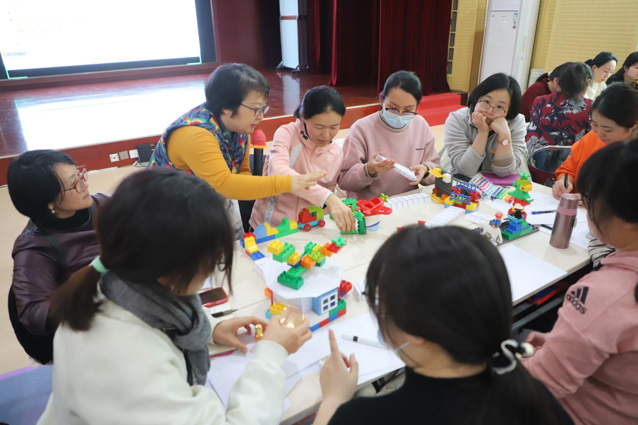 李教授先是请老师们用乐高积木搭建幼儿喜爱的游戏场景,即时访谈了解情况,直观演示如何借助实物实景展开调研;接着,组织老师们依据提前备好的照片,围绕幼儿最喜欢及有待改造的场地分组研讨,展现聚焦问题与儿童会议的教育方法应用;最后,结合诸多教育案例,深入讲解马赛克方法在日常教育实践与研究中的运用之道。