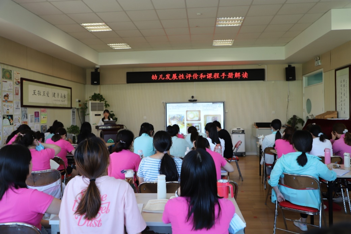 担任本次专题培训的讲师均来自于我园十二五和十三五期间参与评价课题研究的主要成员。上午的培训内容为:田瑞清《幼儿发展性评价体系介绍》、胡玥《幼儿发展检核表的作用和使用方法》、李琳《观察和记录的方法》、田瑞清《“发展课程教师手册”解读》。