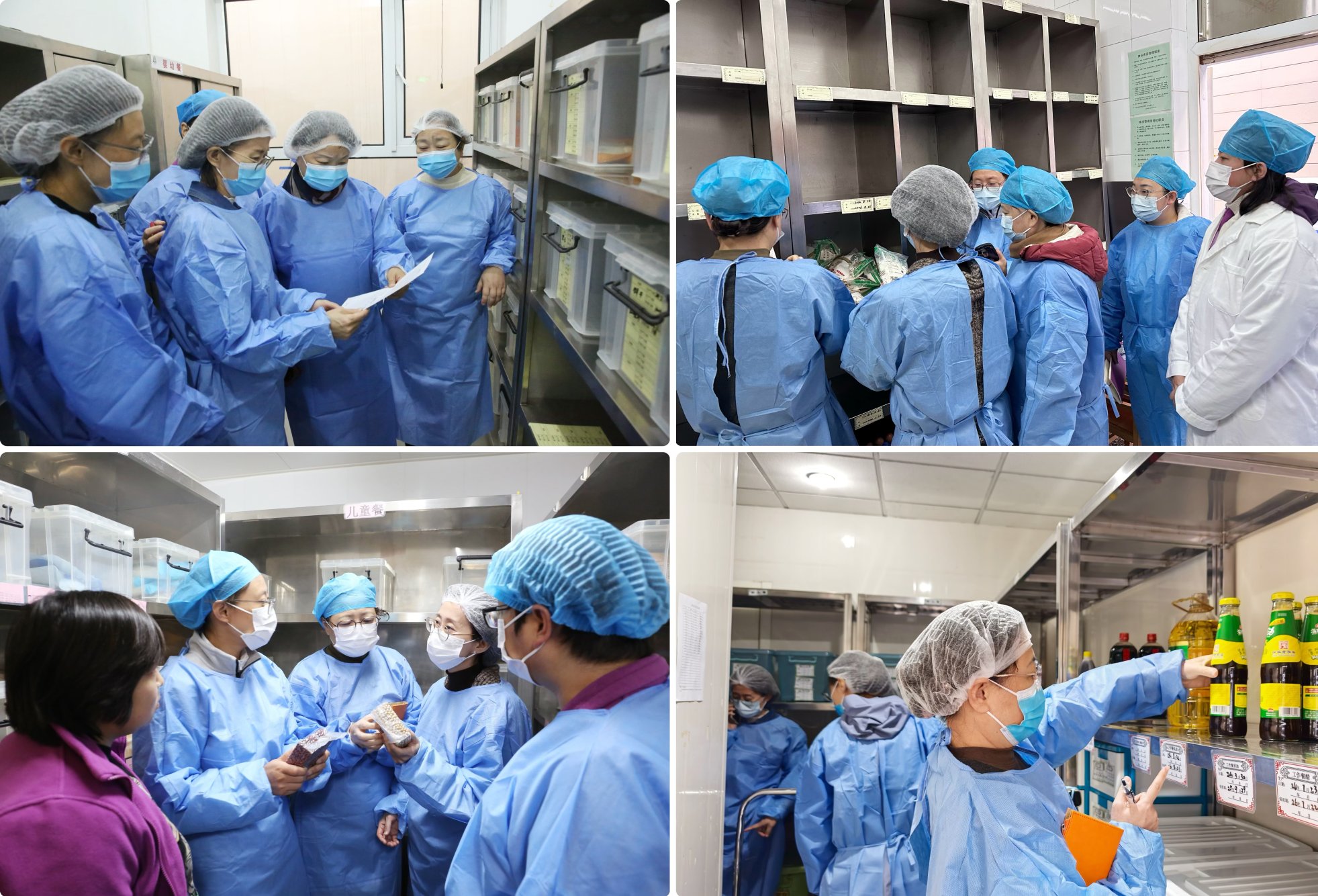 检查小组先后对厨房、食品库房进行实地查看,对食堂安全制度建设及日常工作文档进行查阅,随后围绕供货商配送情况、厨房员工业务水平培训需求以及食谱修改方案等方面与各园执行园长、食品安全管理相关人员进行调研,最后园领导走进班级,与孩子们并肩同坐,用心陪餐,了解幼儿对饭菜的喜好,对饭菜的色泽、口味等进行评价并做好陪餐记录。