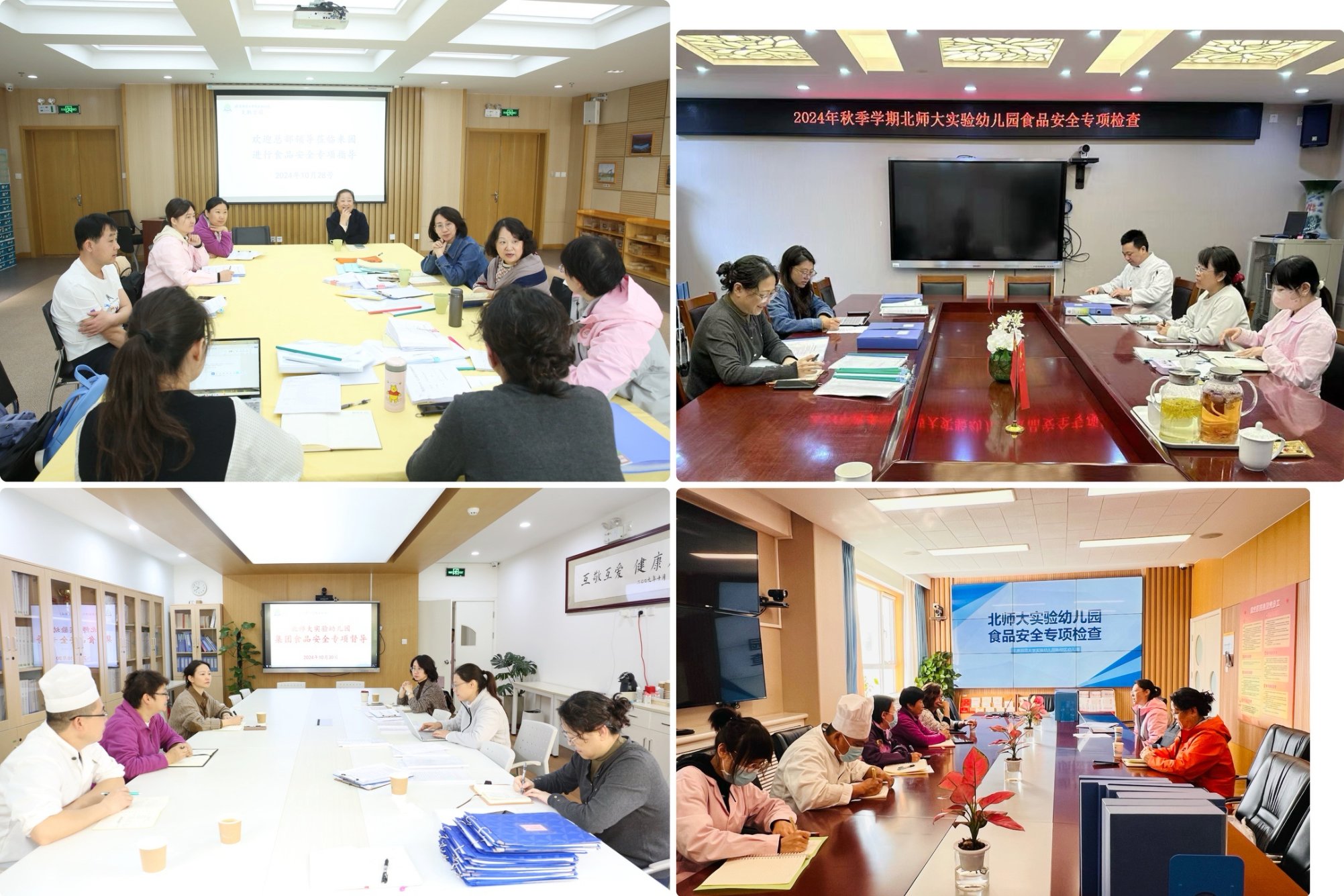 为深入贯彻落实北京市教育系统食品安全工作会议精神,进一步做好全园食品安全管理工作,强化主体责任,追求安全高标准、膳食高质量发展,全面筑牢我园幼儿食品安全防线。2024年10月28日—31日,幼儿园党总支书记杜军、总园长夏华颖、总务后勤督导江克玲及总部教研员吴迪一行四人先后前往七所分园对幼儿园食品安全工作进行专项检查。