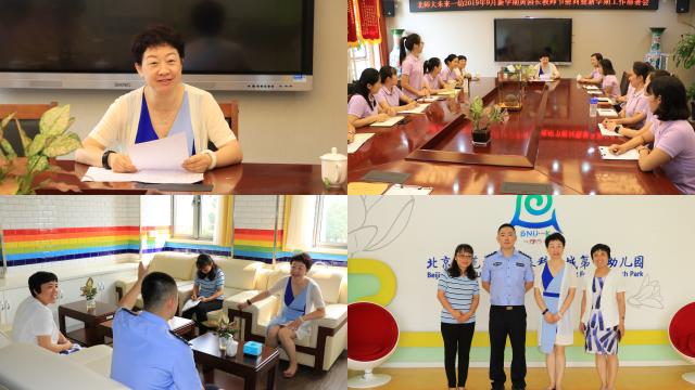 在各园与法制副园长会面时,黄珊总园长首先感谢派出所公安干警对幼儿园工作的长期支持,之后双方就当前校园安全工作面临的新形势、新情况、新要求展开深入交谈。黄珊总园长希望派出所能加强对幼儿园安全工作的指导和培训,法制副园长均表示将积极配合幼儿园,群防群控、齐抓共管。