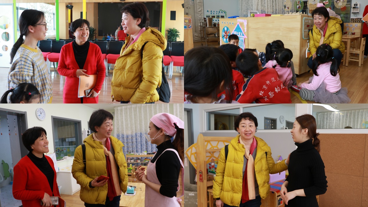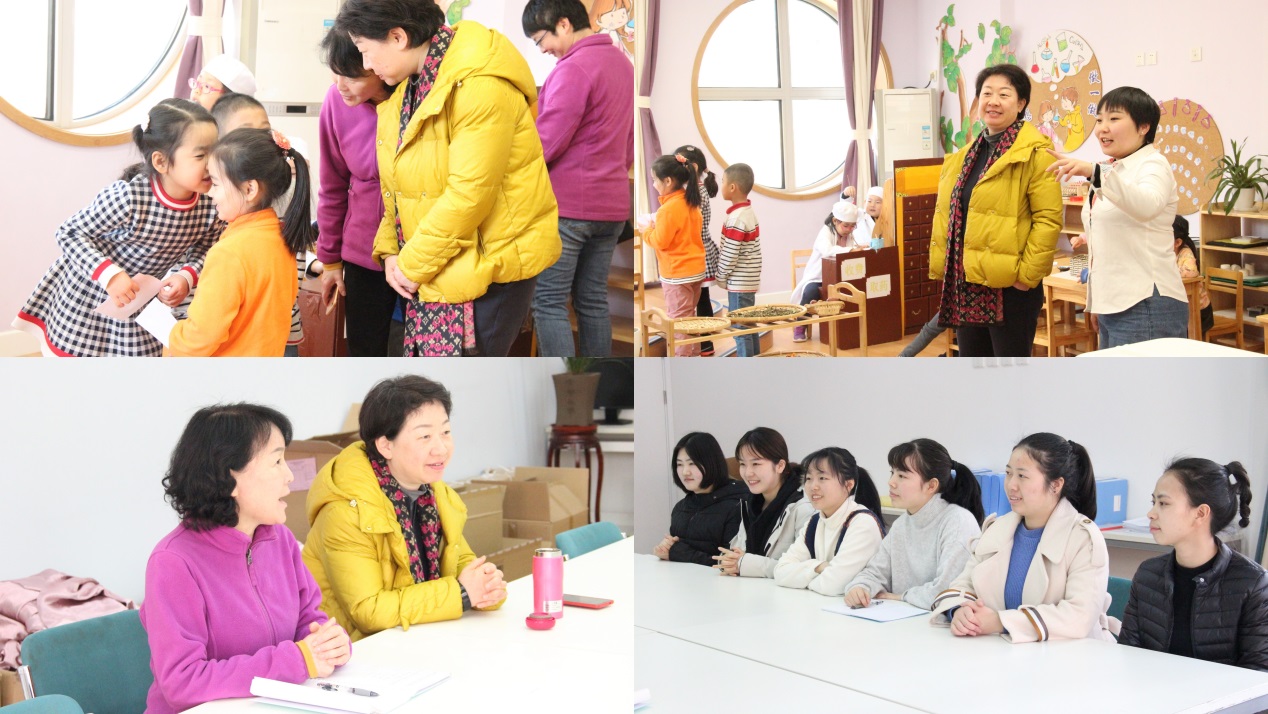 在部分园所黄珊总园长还与实习生进行座谈,了解他们的工作适应状态及感受体会。实习教师纷纷发表自己的感想:“以儿童为本”理念渗透在日常点滴工作中;老师们对幼儿保育和教育工作细致入微;幼儿园工作氛围好,老师之间相互帮助……黄珊总园长表扬了实习生积极认真的工作状态,勉励他们虚心学习、扎实锻炼、尽快成长,同时以自身成长经历传授具体方法工作技巧和方法,如日常带班中要记录与孩子的互动;看午睡时可以思考改进工作的方法;有问题解决不了时可以问问孩子等。