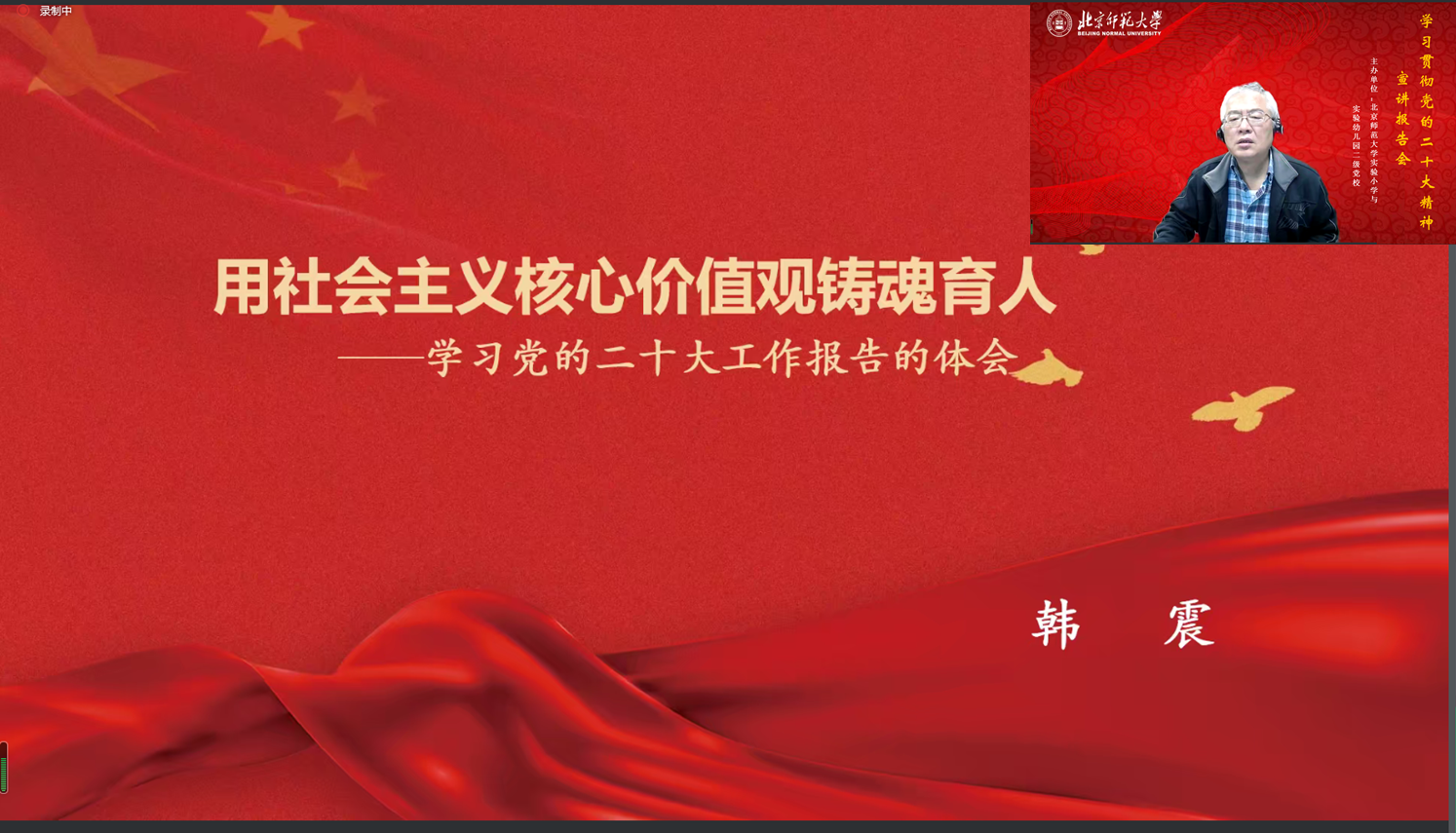 幼儿园党总支聆听学习贯彻党的二十大精神宣讲报告,韩震教授作《用社会主义核心价值观铸魂育人》宣讲报告
