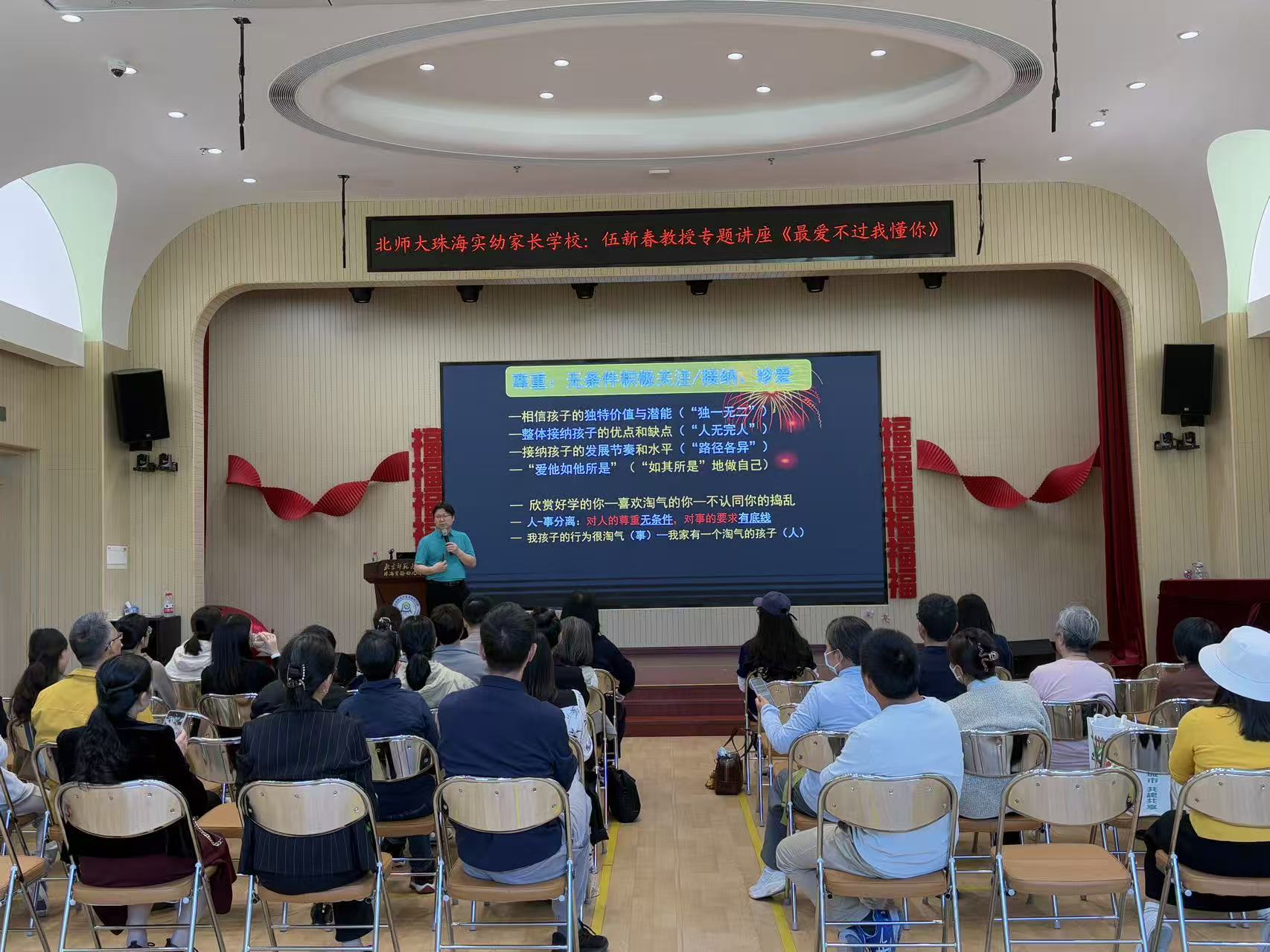 2025年12月19日,九游体育珠海幼儿园成功举办家长学校活动。本次活动特邀九游体育二级教授、心理学科学位委员会主任、文理学院心理系主任、博士生导师伍新春教授,为家长与教师们带来题为《最爱不过我懂你》的专题分享。