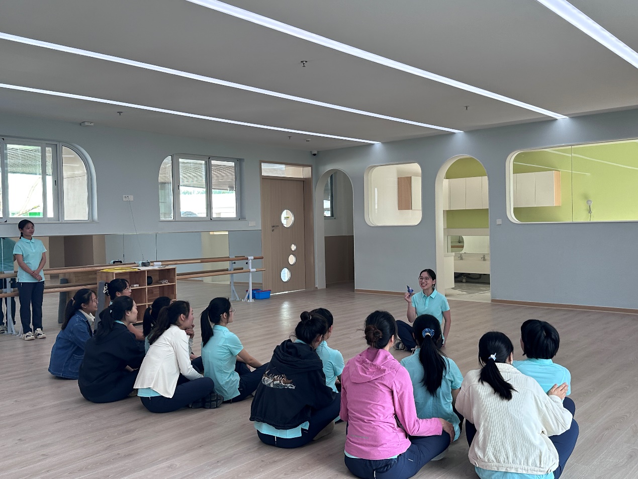 在此行期间,黄珊总园长等一行还观摩了珠海实幼教师的操节、亲子早教示范课展示。随后,大家与珠海实幼干部和教师座谈交流,充分肯定了珠海实幼全体教职工在开园筹备期间克服困难,积极参与工程施工、物资准备、培训学习、环境检查、卫生打扫等工作,为工程竣工验收和开园筹备做了最大的努力和充分的准备。